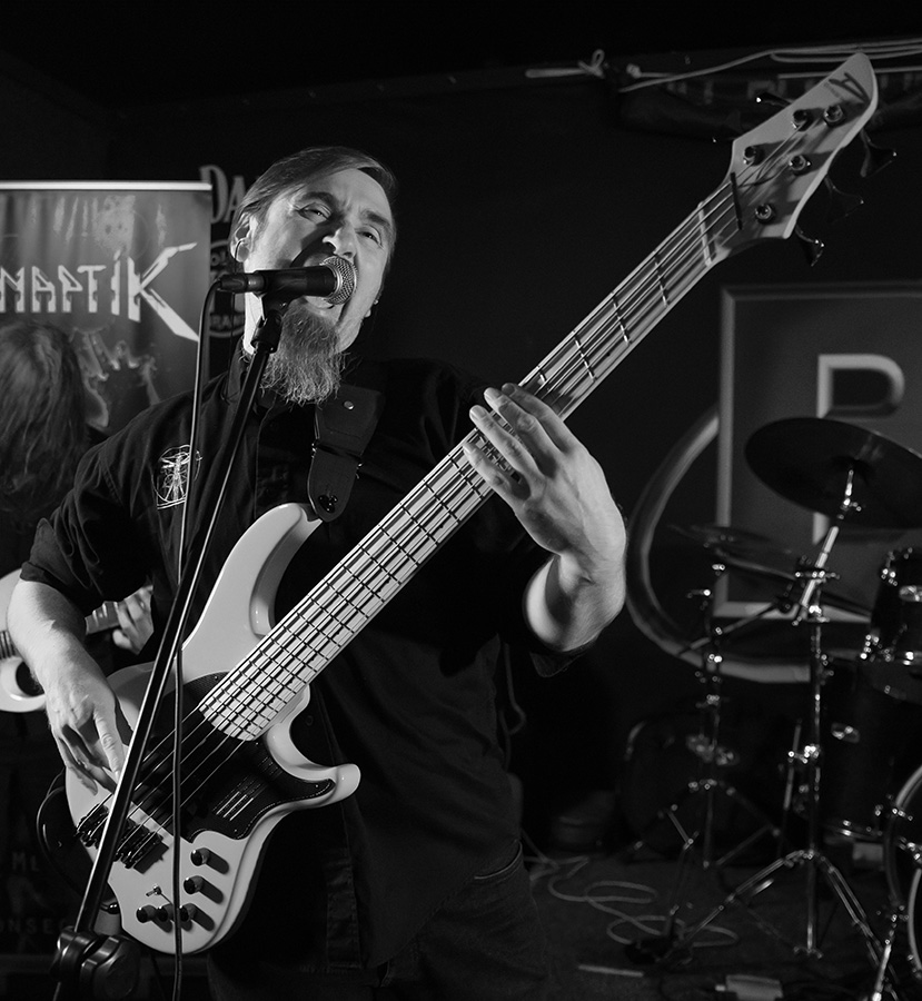 Synaptik liberally mix the band members’ eclectic range of inFLuences creating a hybrid sound-scape with an appeal that transcends music genres. Melody, heavier-than-a-black- hole-riffage, dynamic vocals, death metal aggressiveness and more combined to create the Synaptik spark.